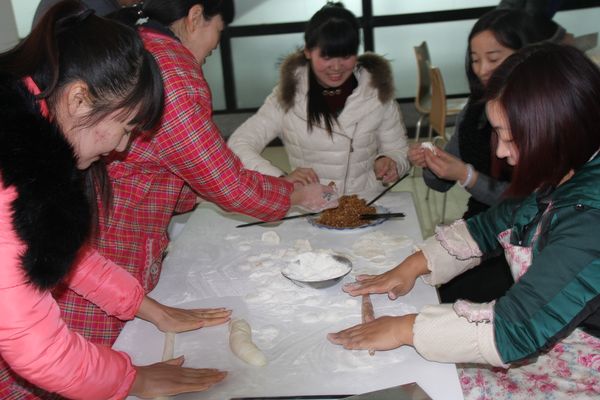 我公司领导组织各部门人员以及一线工人,弘扬毛主席“自己动手,丰衣足食”的作风,东起全体员工自己动手包饺子。在公司领导的组织下,大家开始有秩序的进行准备工作,系上围裙,有的和面、有的擀皮、有的做饺子馅。大家分开两拨,这边和面,那边饱饺子,气氛很活跃。同事们以迅雷不及掩耳之势完成了准备工作,准备工作完成后,进入包饺子阶段,虽然很多同事不怎么会包饺子,但是在别人的帮助下很快进入状态。看着一个个新鲜出炉的饺子,同事们的表情非常精彩,相互调侃的的话也渐渐多起来,包饺子工程进入***阶段,气氛一时异常火热,看着同事们一个个热情洋溢的表情,一盘盘“奇形怪状”的饺子真是羡煞旁人!